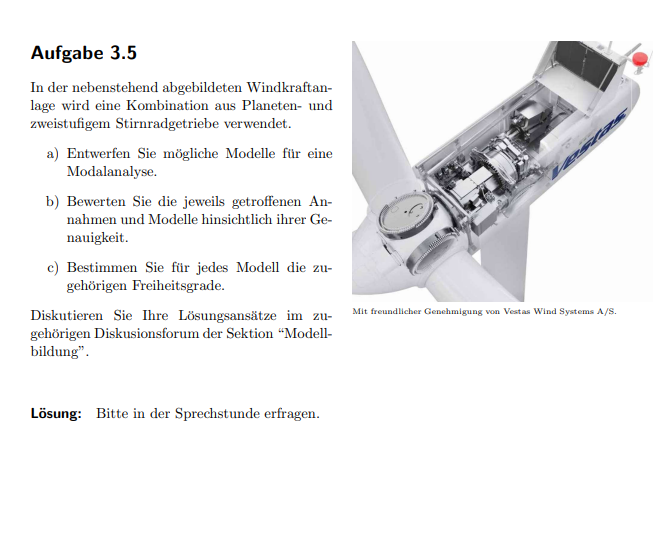 2 Aufgaben für eine Windkraftanlage. Bild 1 ist eine Aufgabe für eine Modellanalyse für ein Planeten- und Stirnradgetriebe. Im Bild 2 geht es um ein Rotorblatt.